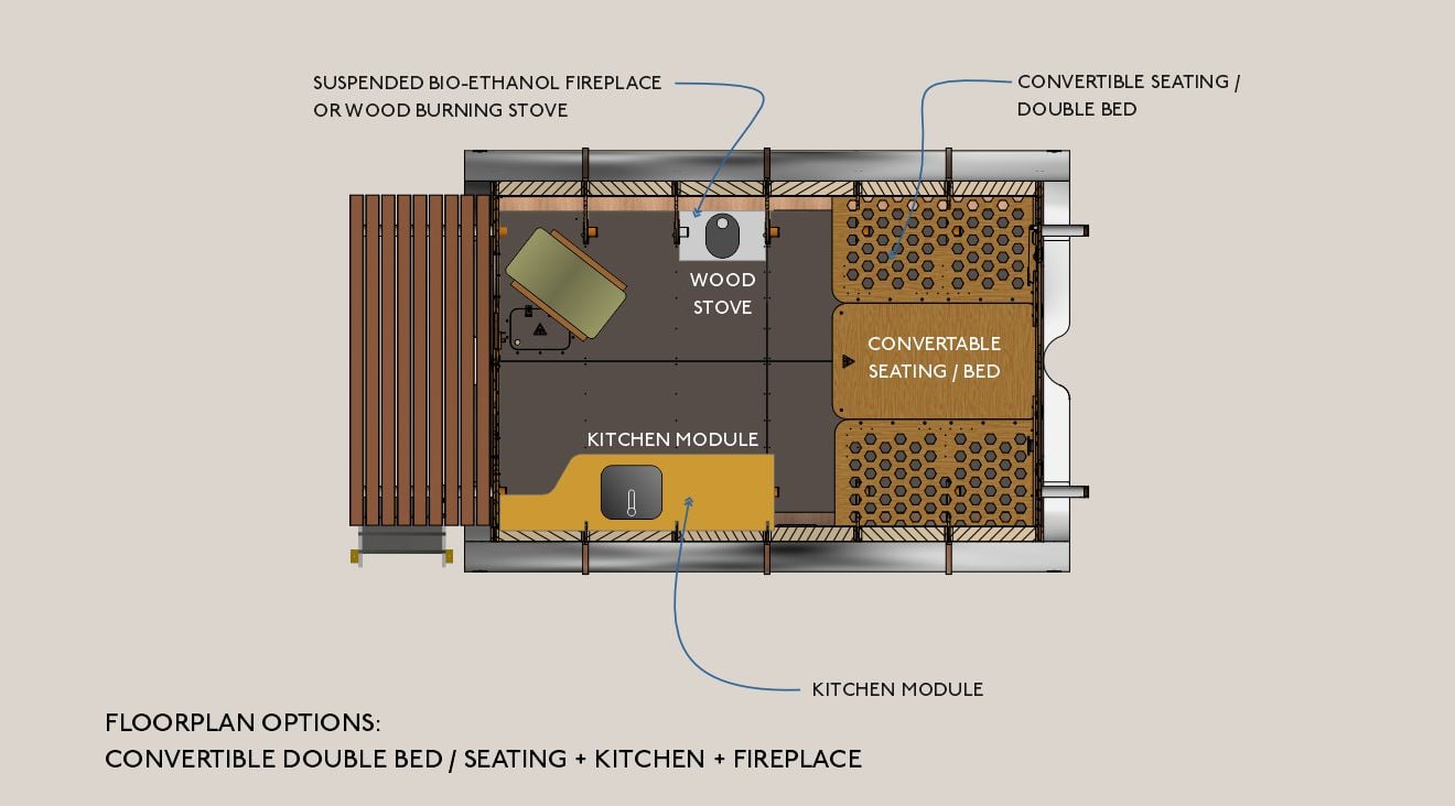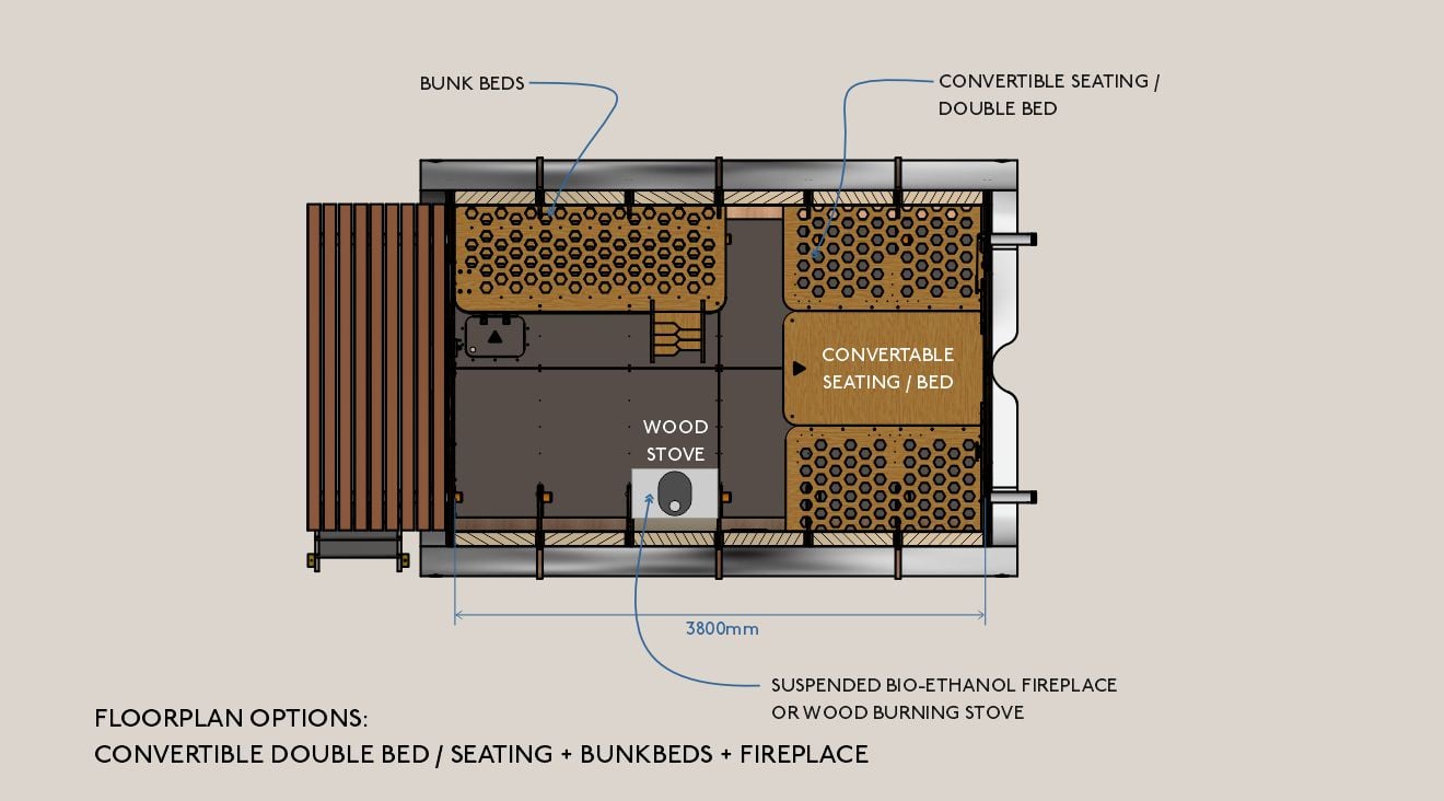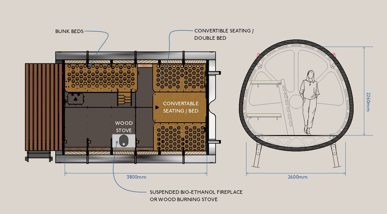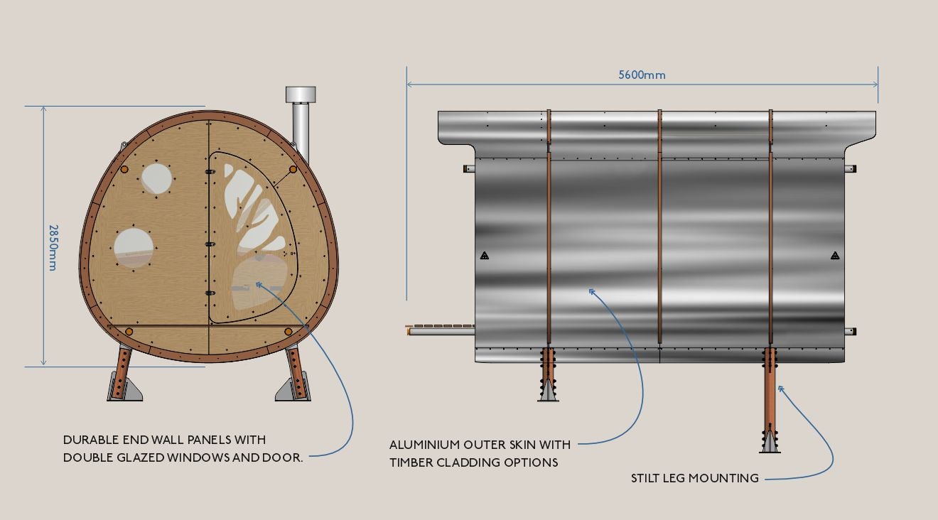 Inspired by the principles of modern aerospace design, the Fuselage offers a lightweight, robust and extremely portable accommodation solution. Like an aeroplane, the Fuselage is engineered to go the distance.