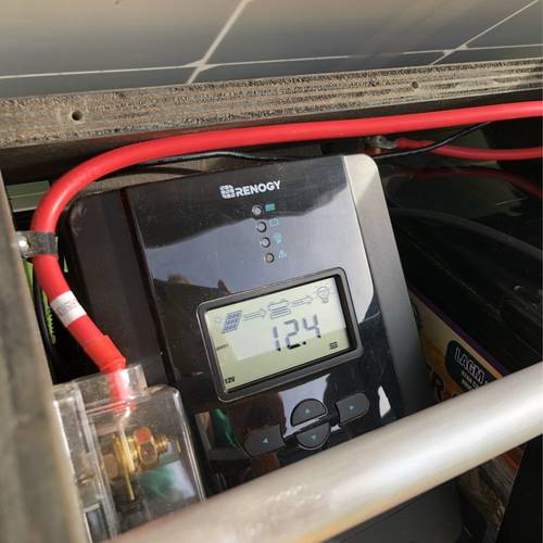 Our 100W panel & 115Ah battery combination will usually give a set-up such as above uninterrupted power throughout most of the season (UK winters may need additional charge time).