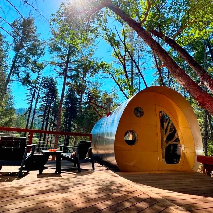 At Tree Tents, we believe nature is not just a place to visit—it’s a place to belong. Tucked away in the heart of the Santa Cruz Mountains, our site stretches across nine acres of redwood, fir, madrone, and oak forest, with creeks and wildflower meadows leading to sweeping ridge line views. Whether you’re staying in one of our distinctive tree tents, cozy cabin cottages, restored Airstreams, or pitching your own tent, you’ll find all the magic of the outdoors complemented by thoughtful comforts. Private fire pits, picnic tables, outdoor seating, and grill setups invite you to slow down, savour the moment, and unwind beneath the stars.