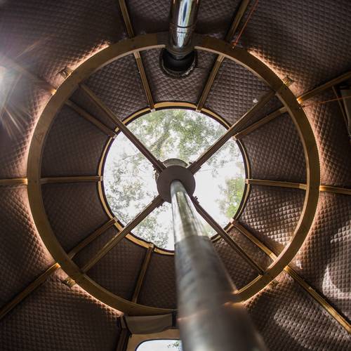 Combining the precision of aeronautical engineering and the romance of wild camping the 3m diameter Tree Tent is a truly special place to hunker down for that all year round, off-grid, wilderness experience. Suspended up in the tree tops the Tree Tent has a minimal impact on its environment but a huge impact with its guests.