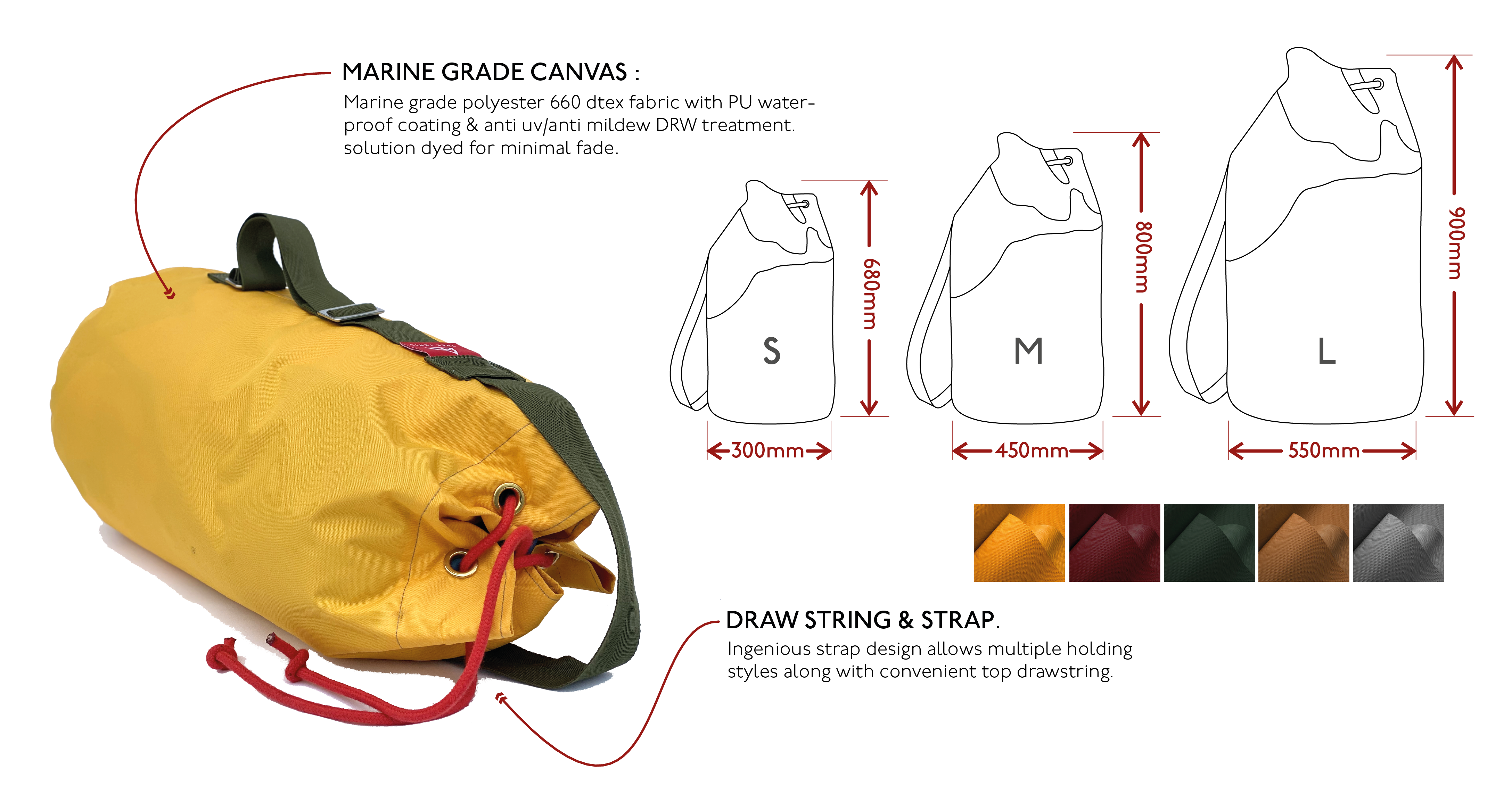 We’ve since slightly re-designed the kit bags to include some more convenient carrying features and offer them in a range of colours and sizes. Made using the same great marine grade waterproof canvas as our Tree Tent, they're created for the outdoors, and to be used as ruggedly as you like. You should be able to do pretty much what you want, and keep your things safe and protected. They're super durable - and we expect them to serve you just as well and for just as long as they serve us.