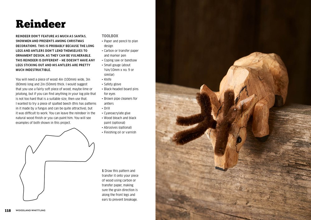 Woodland Whittling guides you through the basics explaining what equipment you need, how to hold the knife, and what timber to use. The projects are then all described in detail with clear step-by-step photographs.